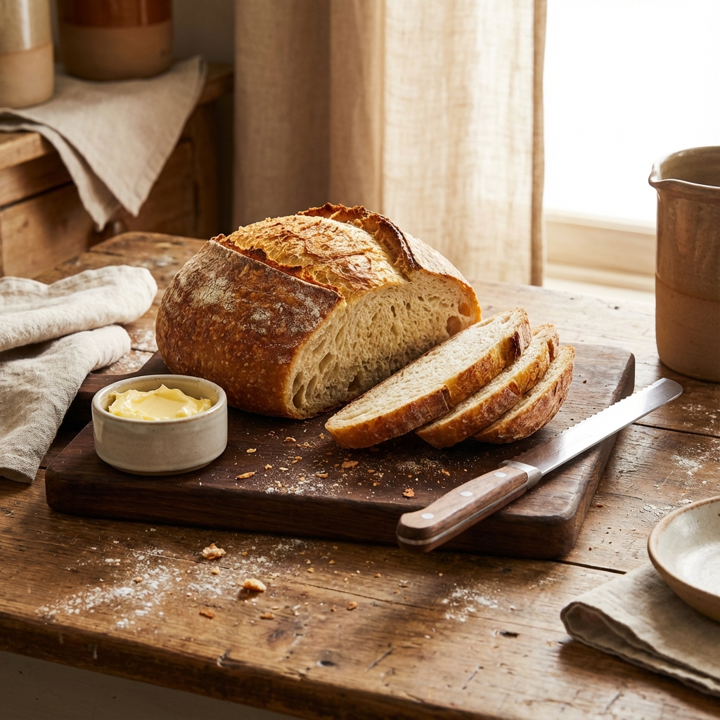Bake for 30–35 minutes. When done, the loaf should sound hollow when tapped on the bottom.